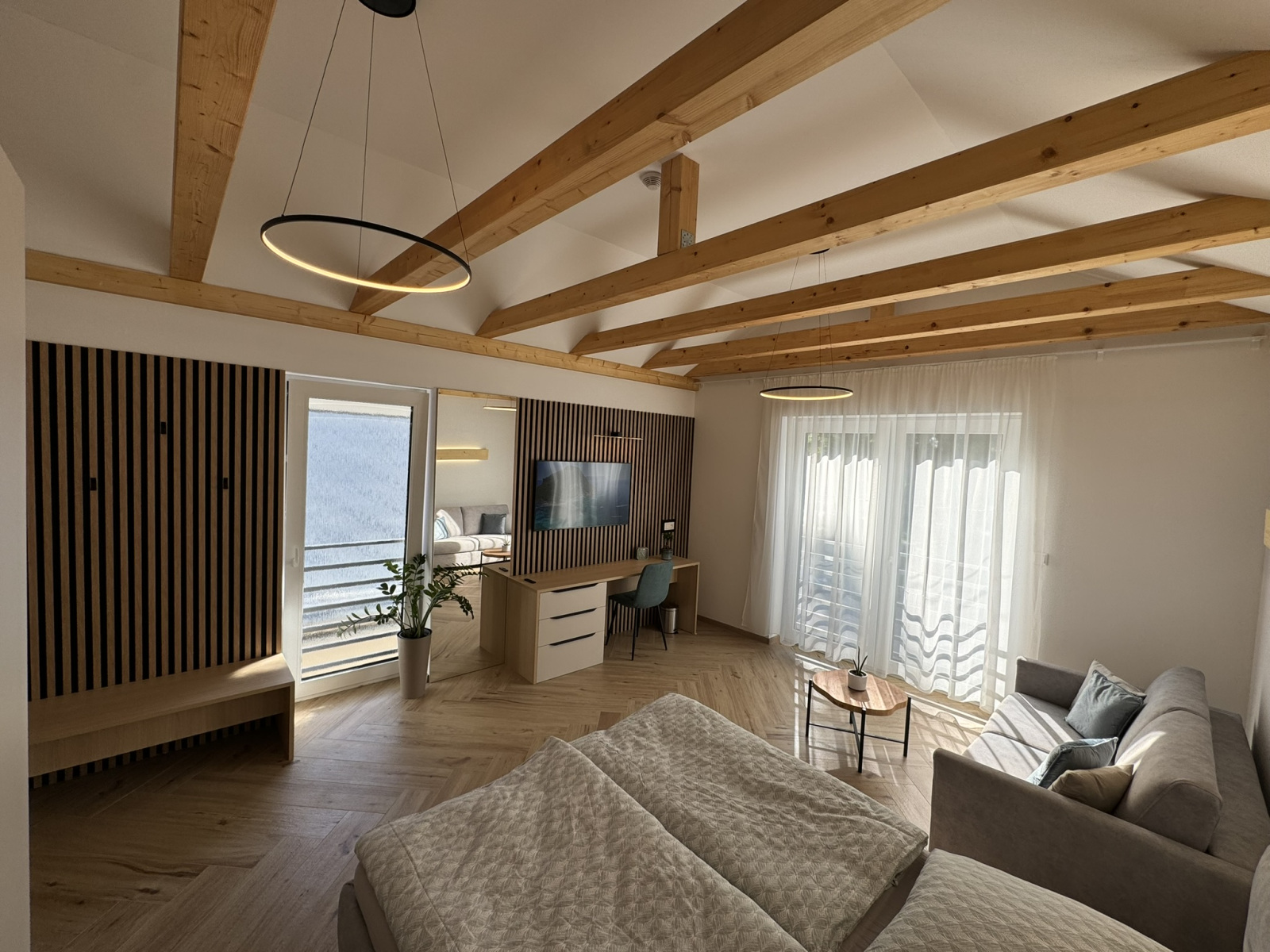 1 veľká manželská posteľ a 1 pohovka (2 dospelí+2 deti)